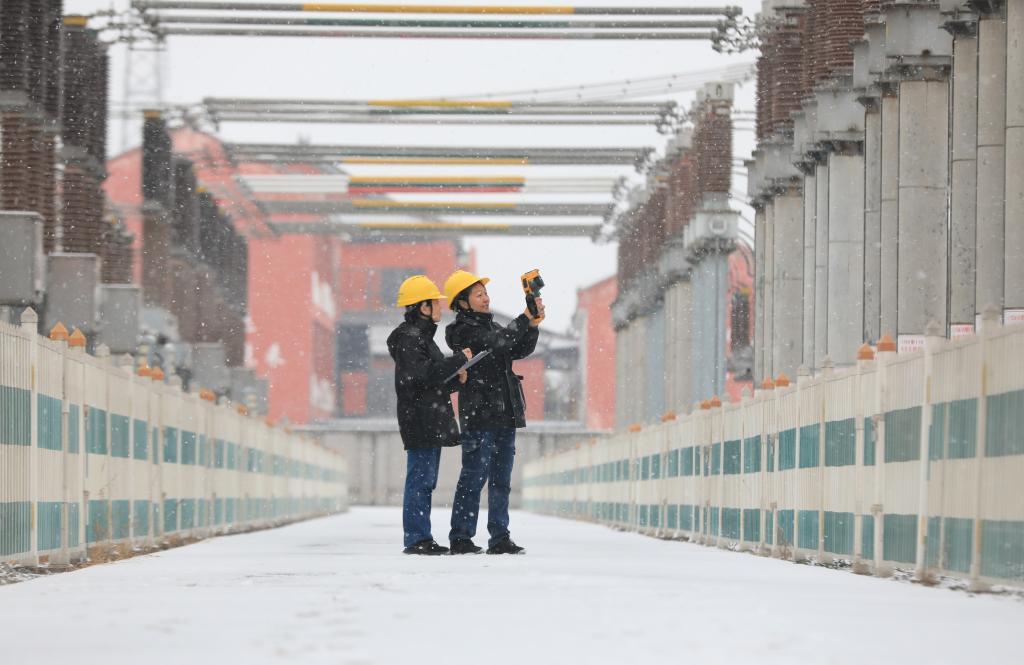 1月19日,在河南省焦作市温县220千伏拳乡变电站,工作人员使用红外测温仪对供电设备做测温测负。